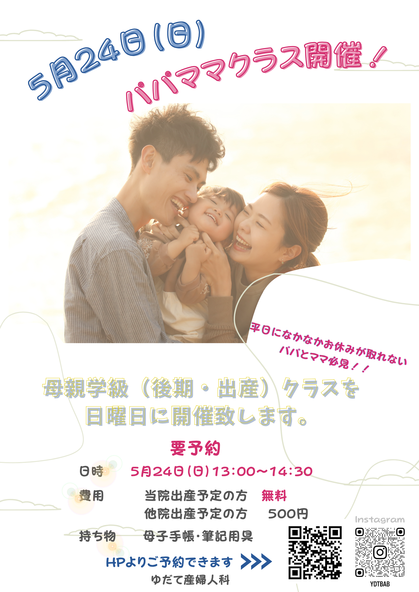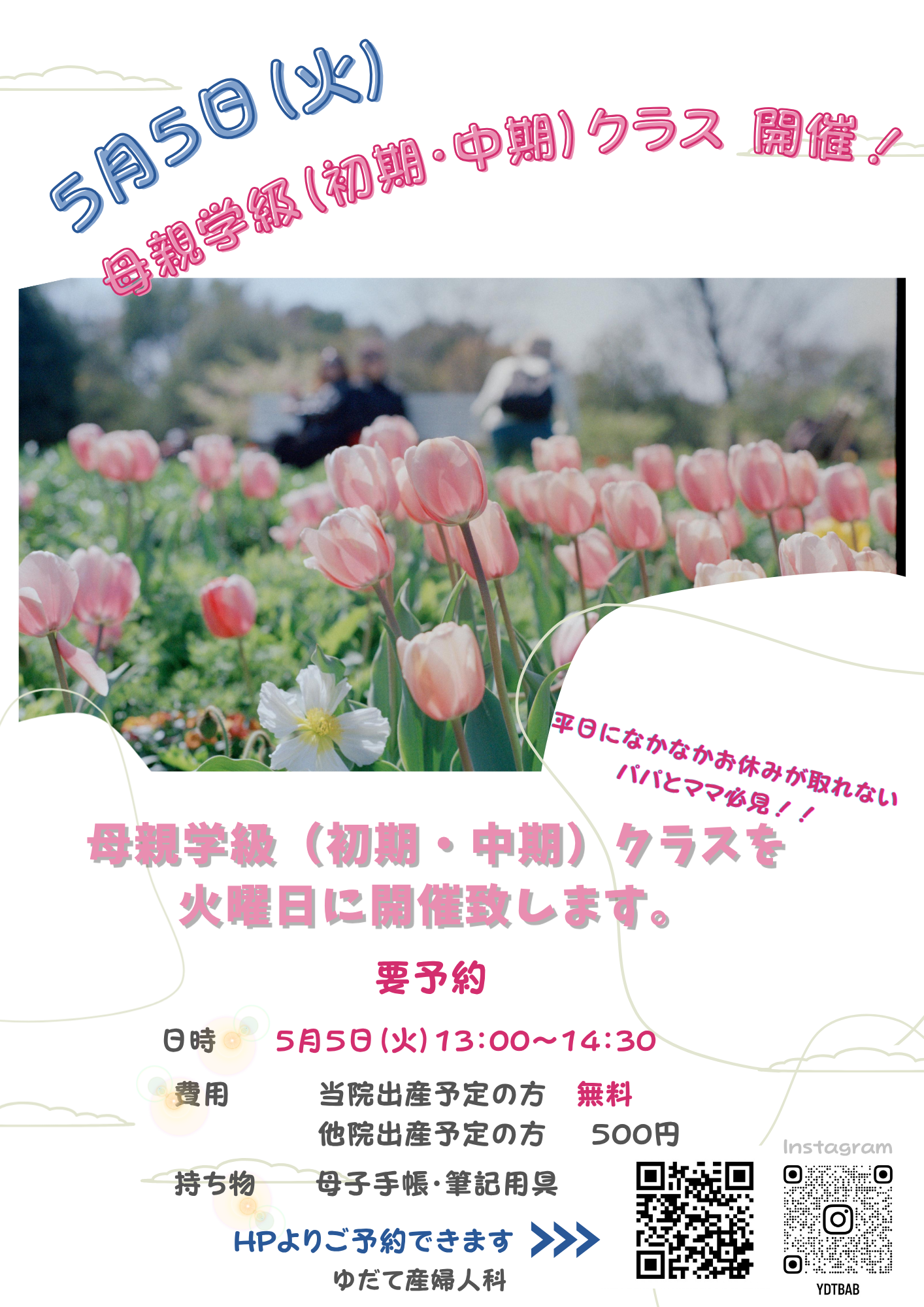 ☆5月5日(火)に母親学級(初期・中期)クラス